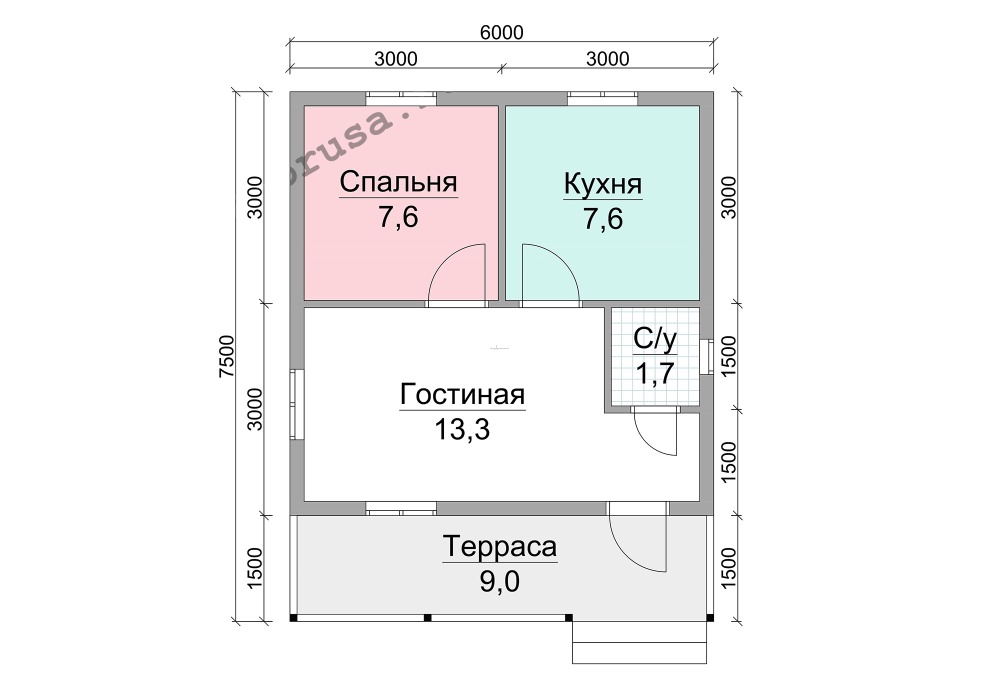 | Под усадку (без отделки) | 6х7,5 | Cруб дома 190х140 мм | 1100300 | Заказать |