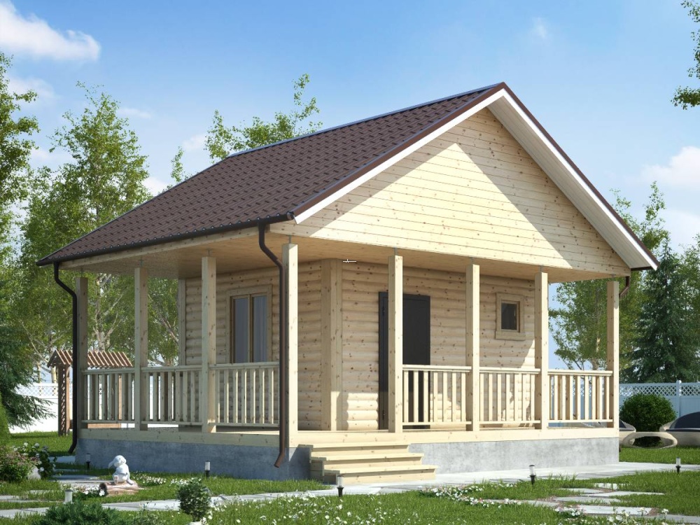 Заказывая дом можно выбрать нужный тип кровли: четырехскатная, двускатная и вальмовая. Двухскатная считается особенно популярной у малометражных бань.