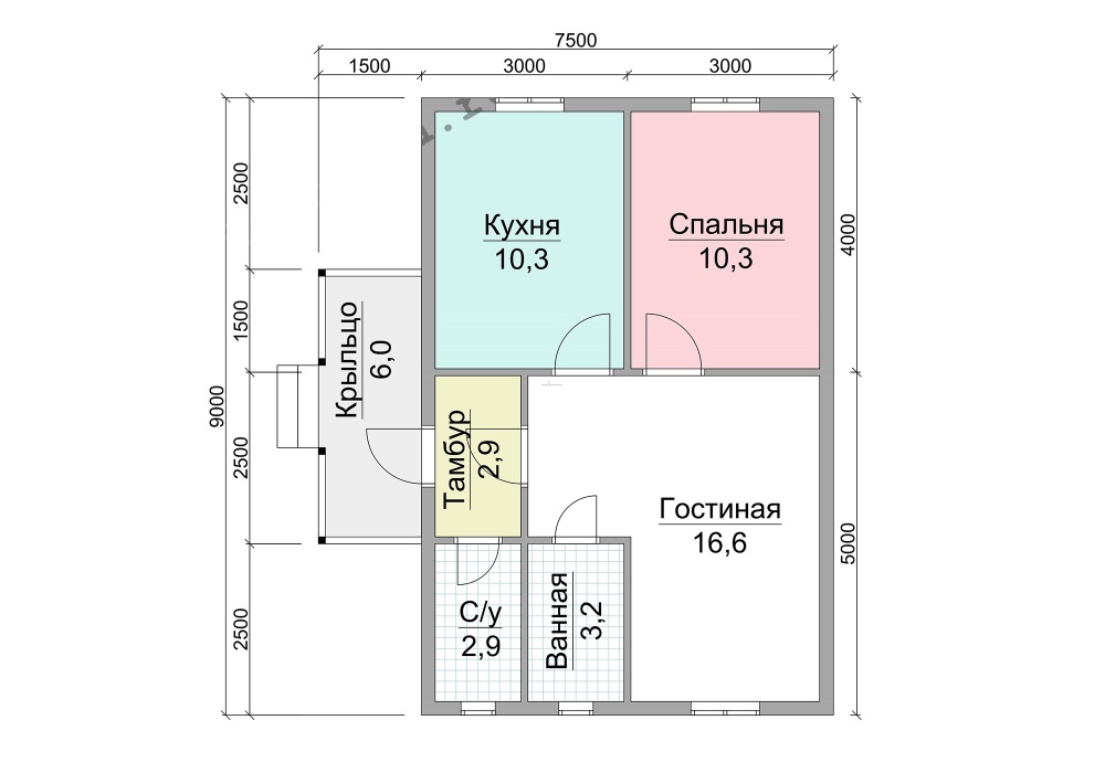 | Окна | Двухкамерные стеклопакеты ПВХ белого цвета, профиль 60 мм. В комплекте: отливы, подоконники, москитные сетки. | |